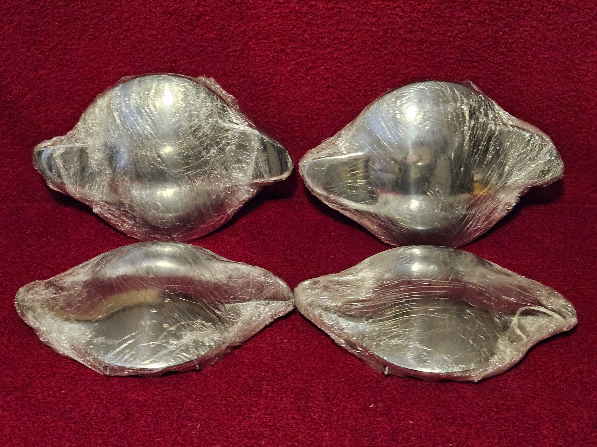 Brand new set of 4 polished aluminum Spinner Knock Offs for wire wheels. These are smooth with no logo or V8.