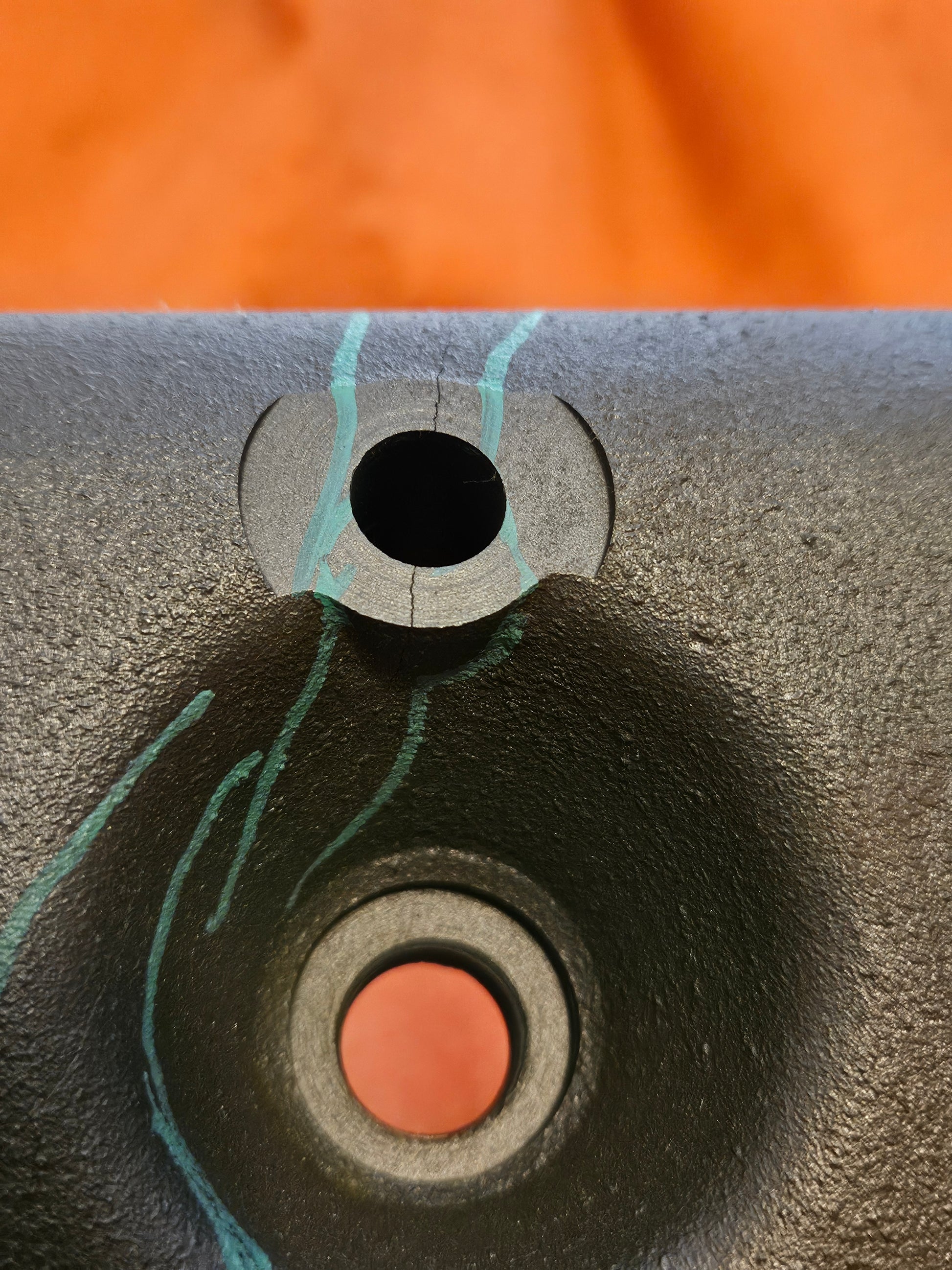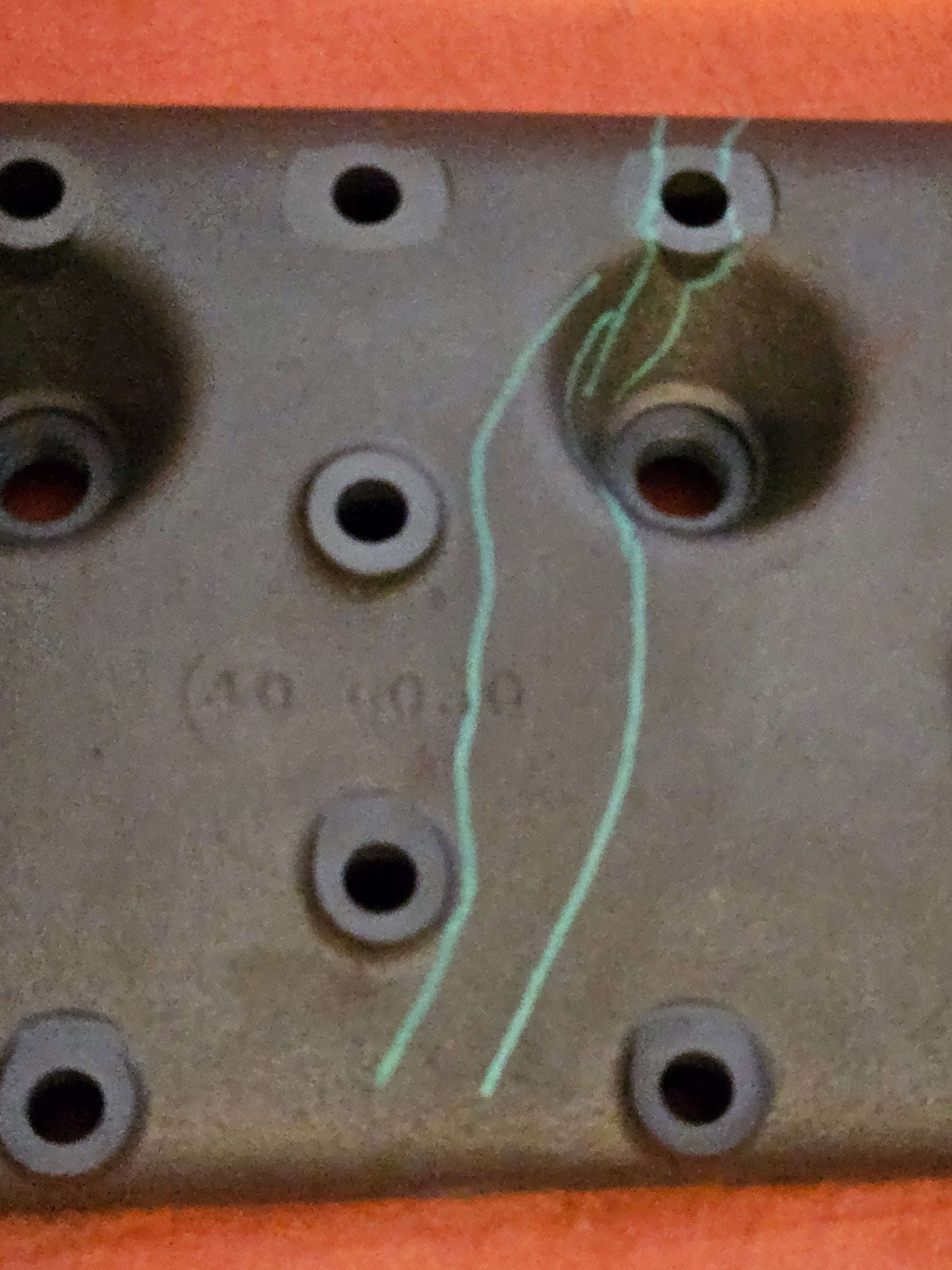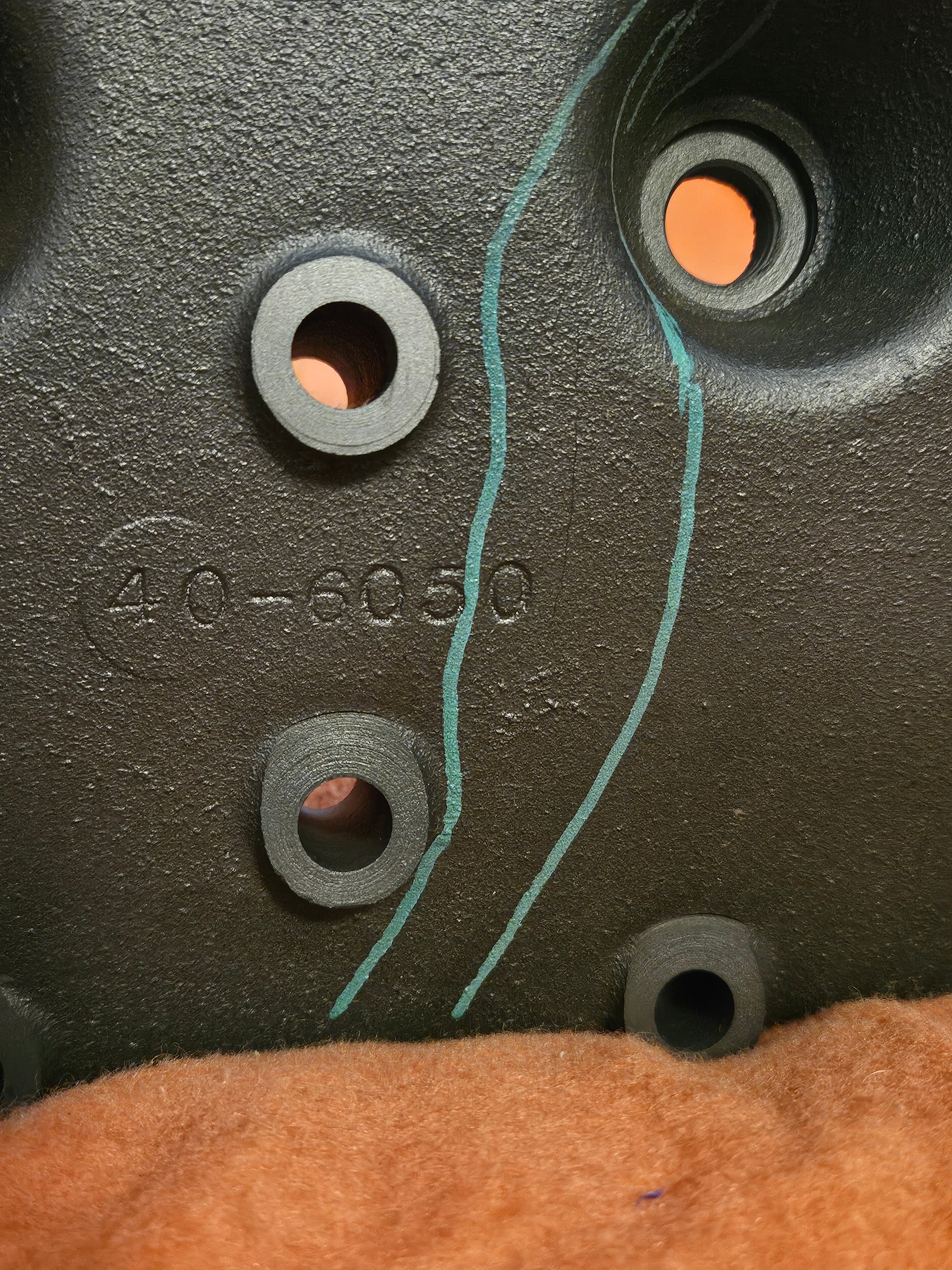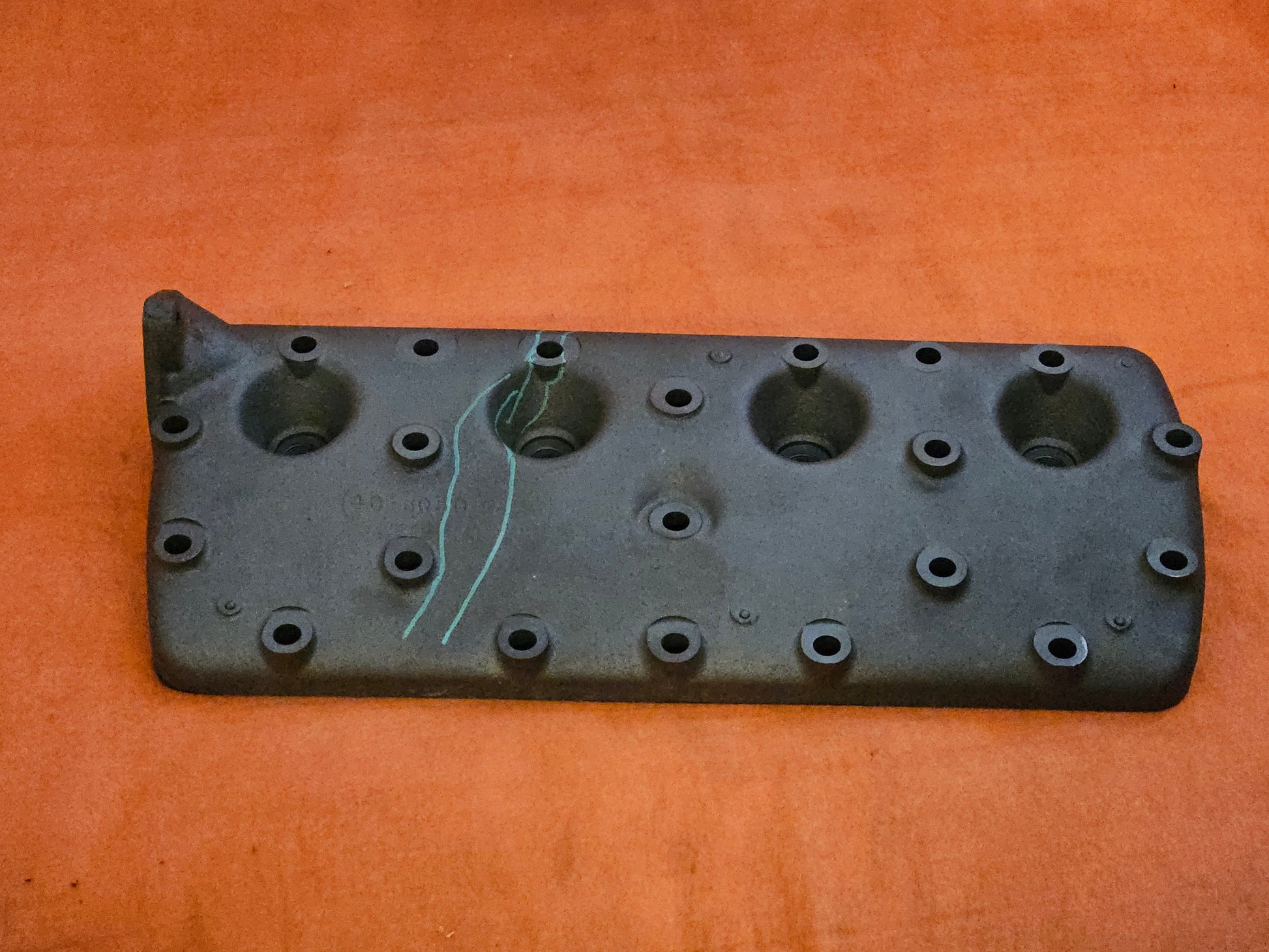 Barn find new old reproduction stock head. I took this out of the original package (unfortunately the box is completely falling apart) and had the machine shop clean and magnaflux. They discovered a crack. Someone might be able to repair this. If not, use as garage/yard art.