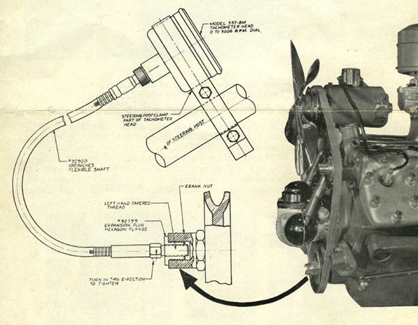 1932-1948 Ford Flathead V8 Stewart Warner 674L Mechanical Tachometer Crank Drive NEW