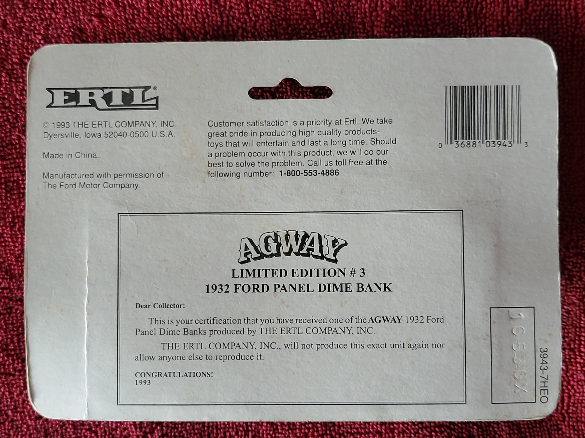 1932 Ford Panel Dime Bank AGWAY 1993 ERTL Limited Edition #3 NIB