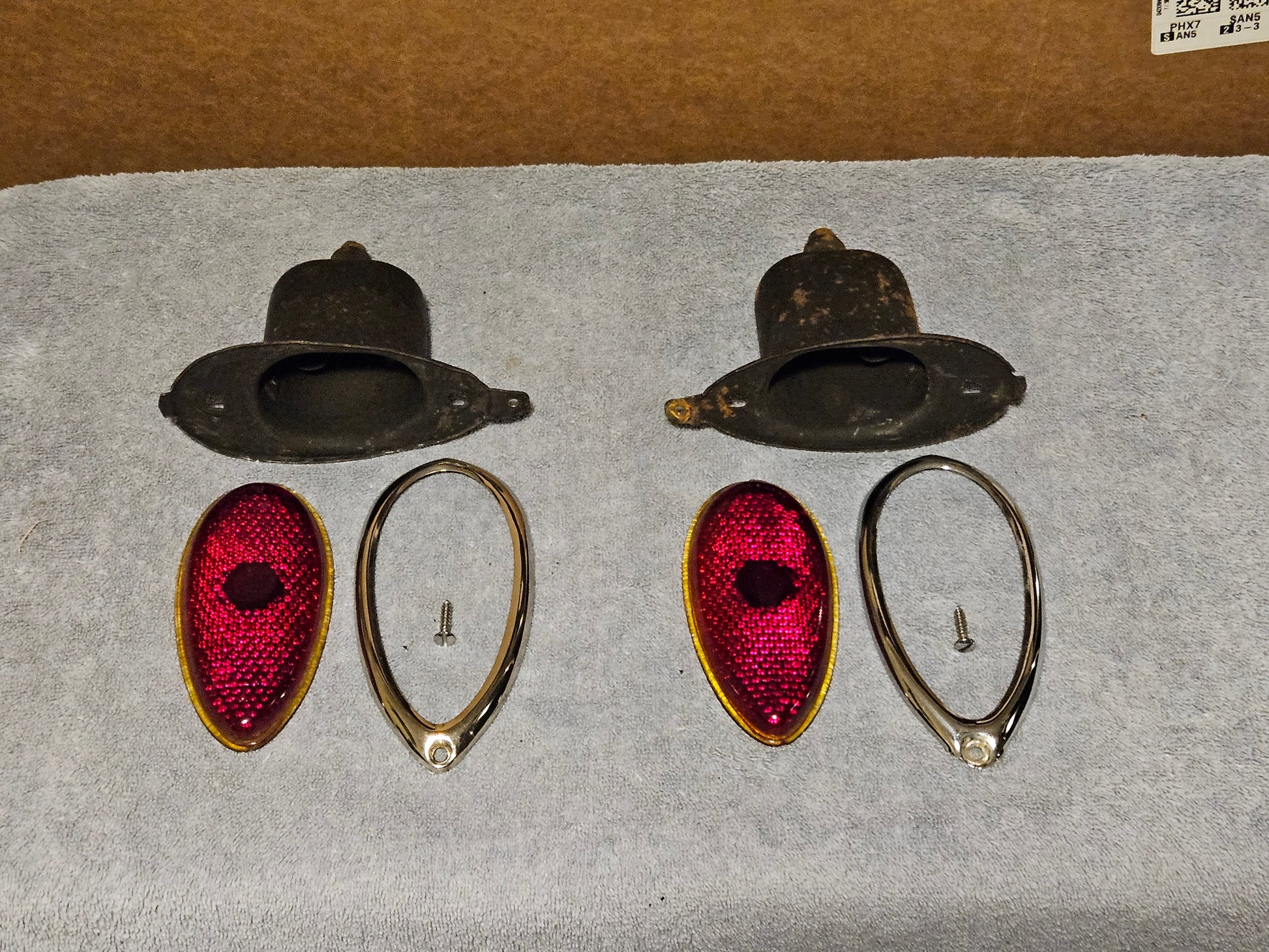 1938-1939 Ford Tail Light Assemblies Pair Lens Trim Bucket Used