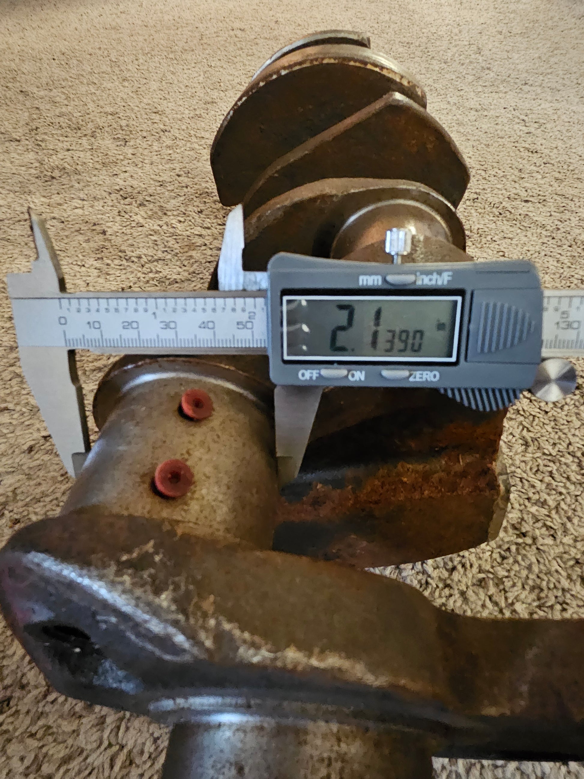 Overall length is 26.030". Wide counterweight is approximately 6.0". Clean-out holes are the large 0.6250" (5/8") type. Main journals measure 2.4990" (see picture). Rod journals have 2 oil holes and measure 2.1390" (see picture). These measurements are consistent with a stock uncut crankshaft. Stroke is 3.750".