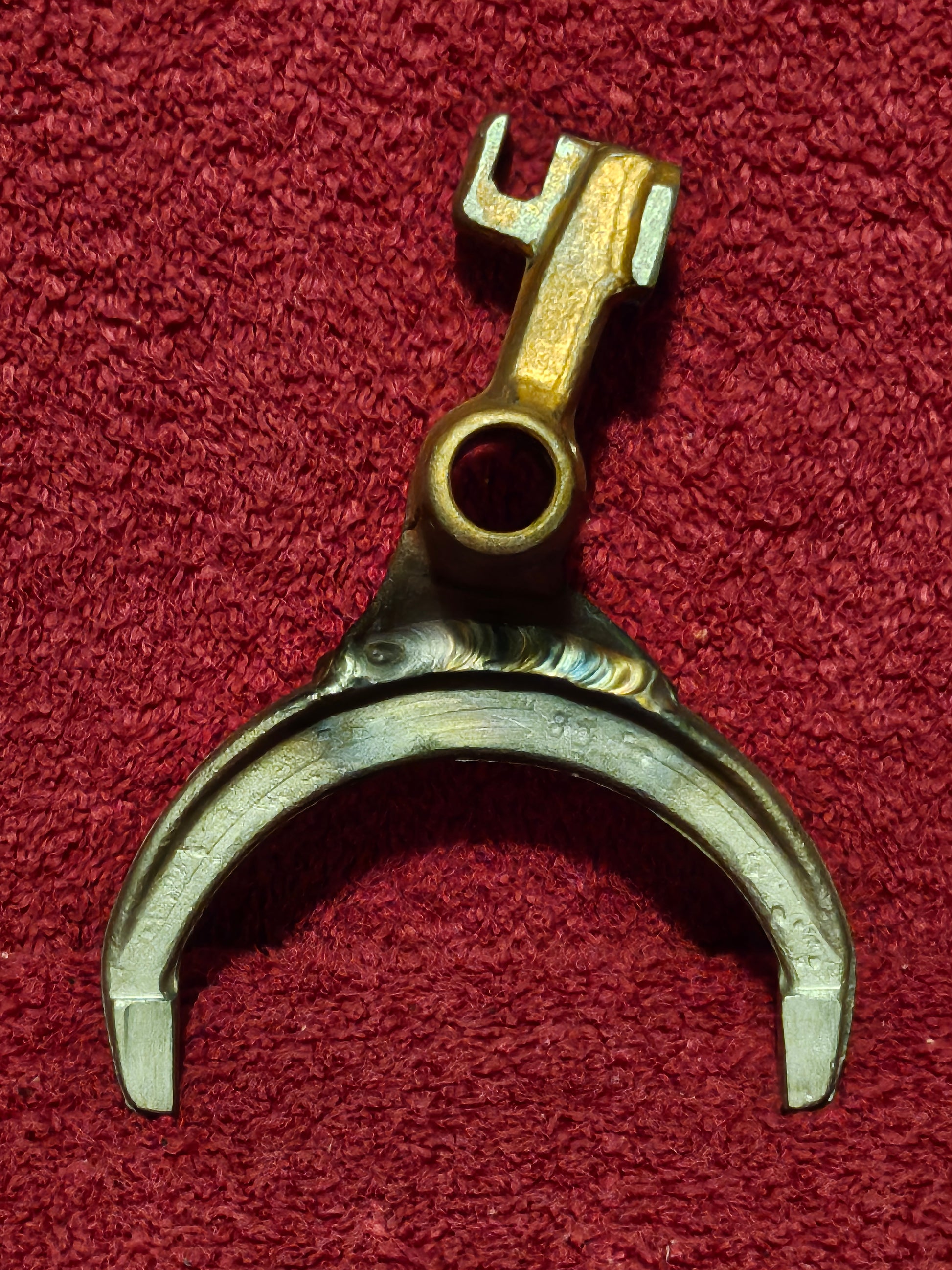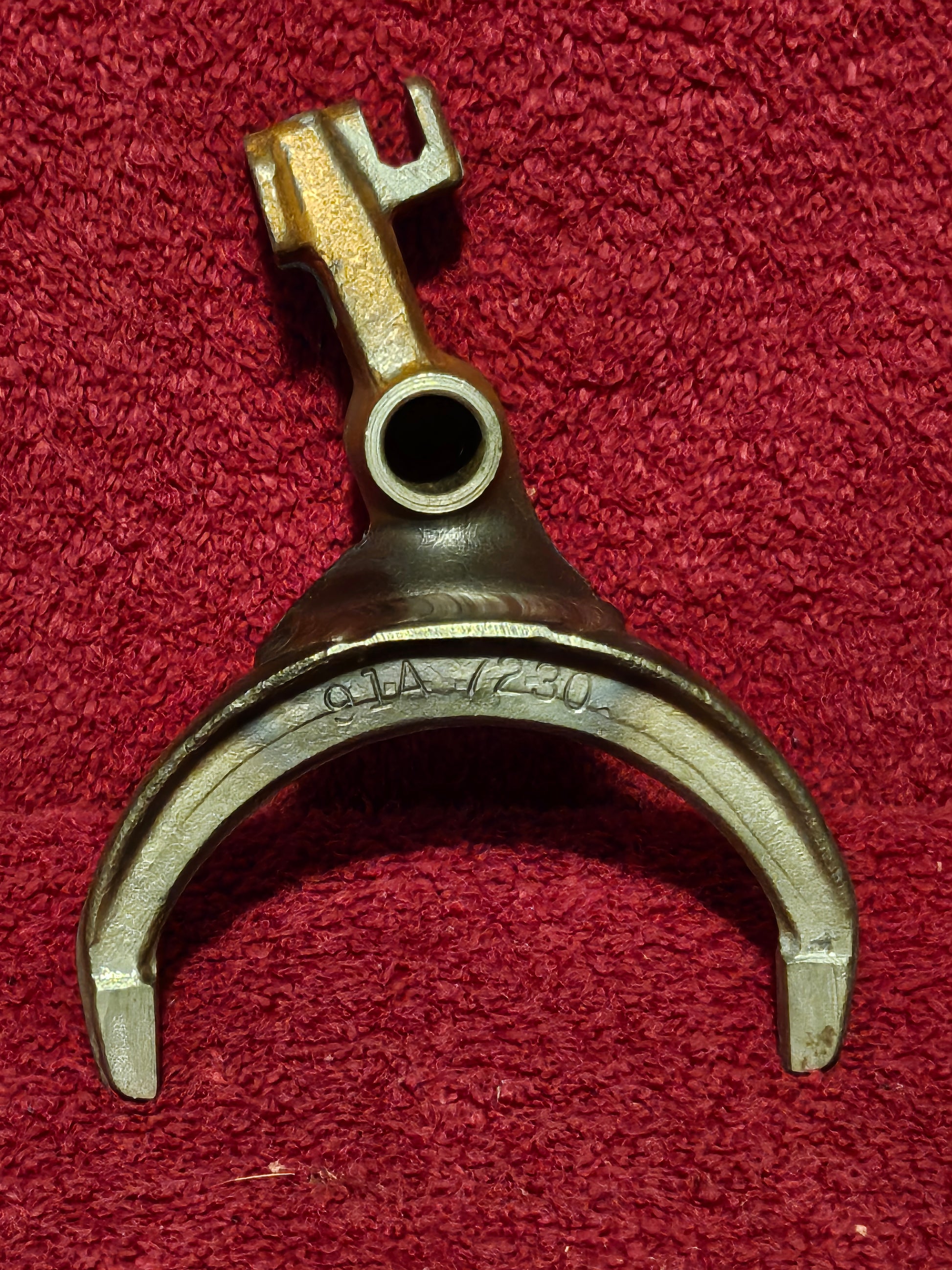 From what I can find researching this fork, these transmission forks have been modified to be the desirable 91A-7230 Fork. They are the 36-38 Forks that have been jigged off an original 91A-7230 fork and have had a 40-48 Fork sideshift large fork (3.12”) TIG welded on. They are nice! You can put these in the 81A double detent top or the 68 top to run the later gear set.