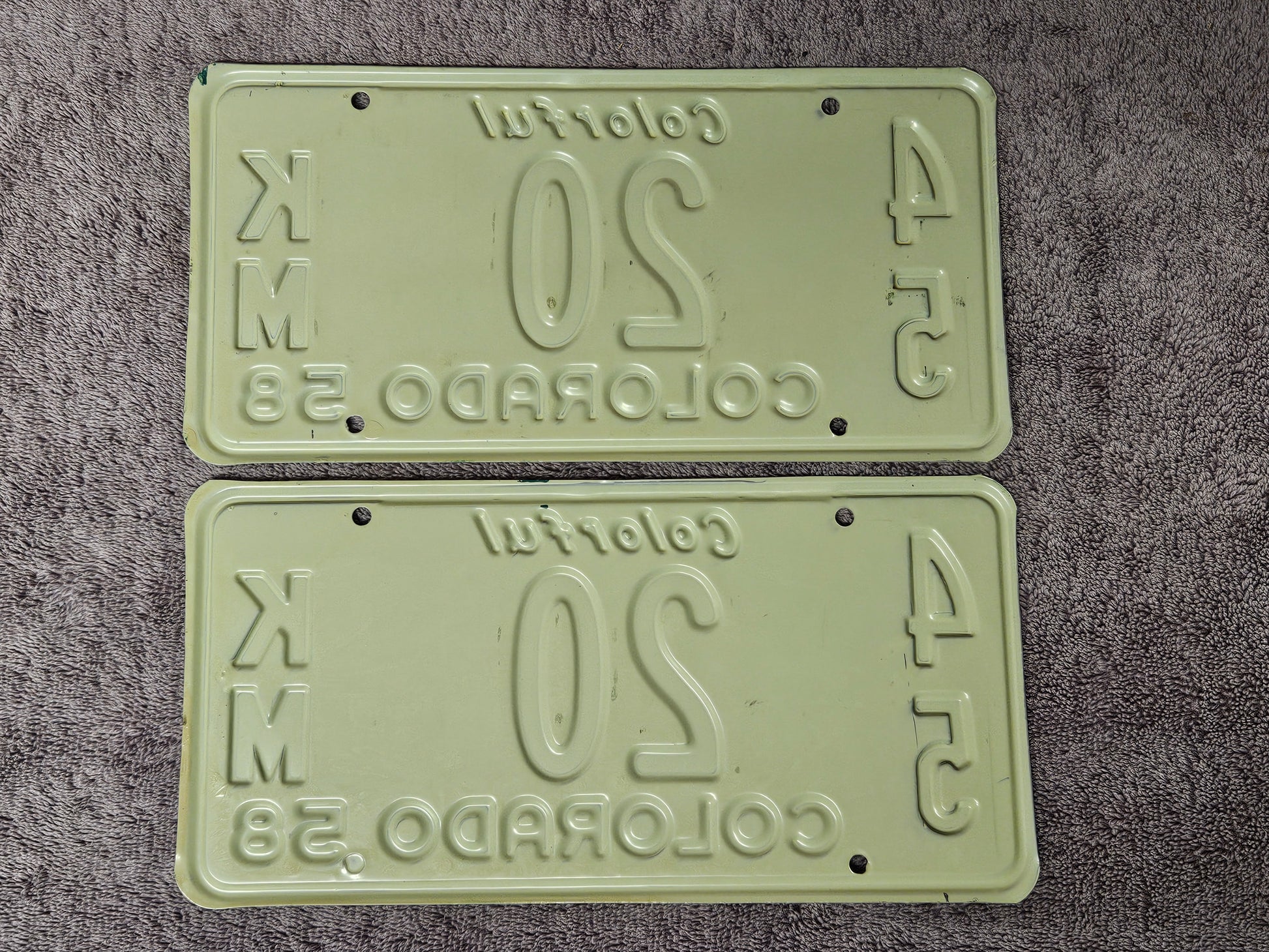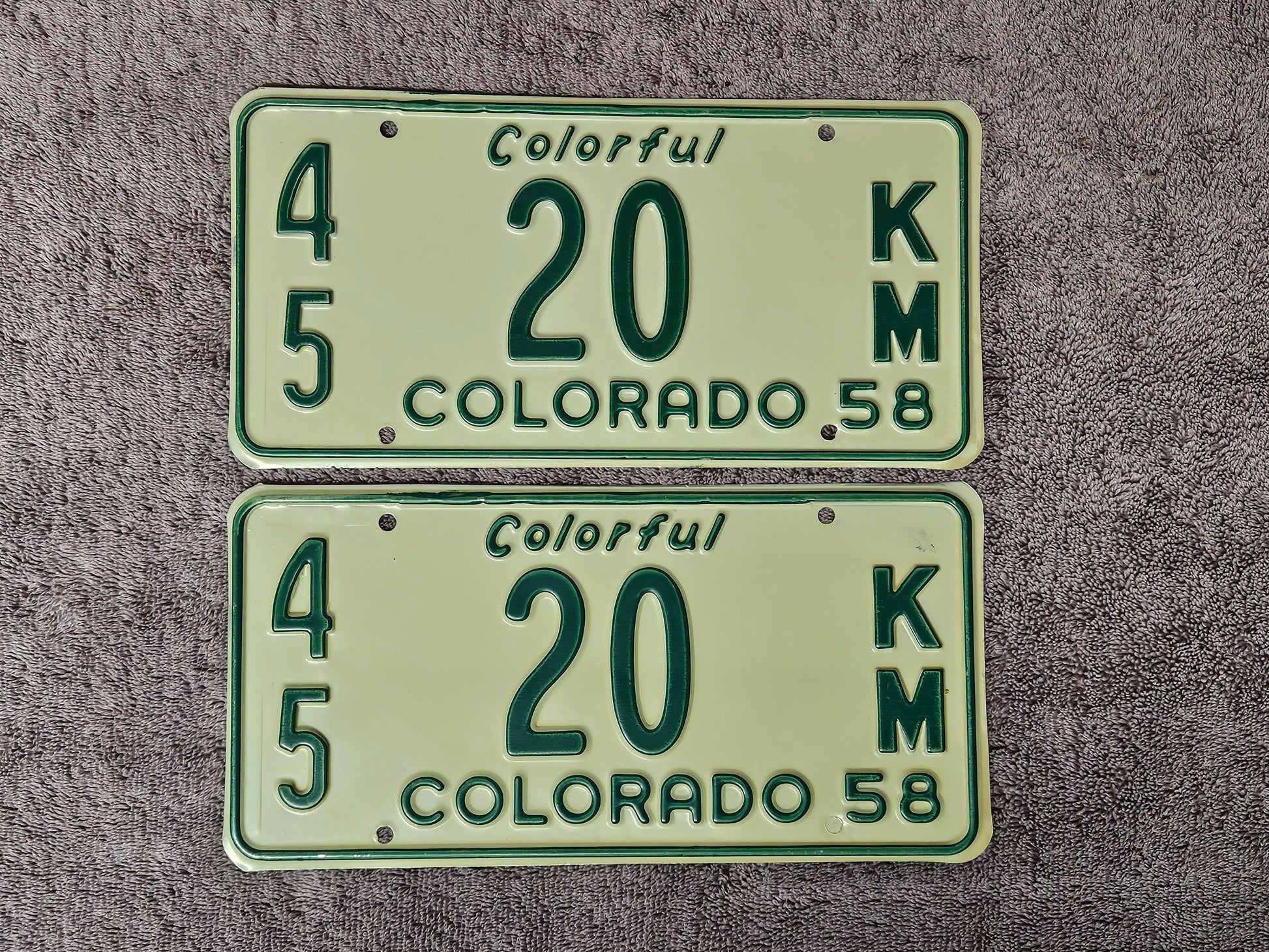 1958 Colorado License Plate Low Digit #20 PAIR Original NOS