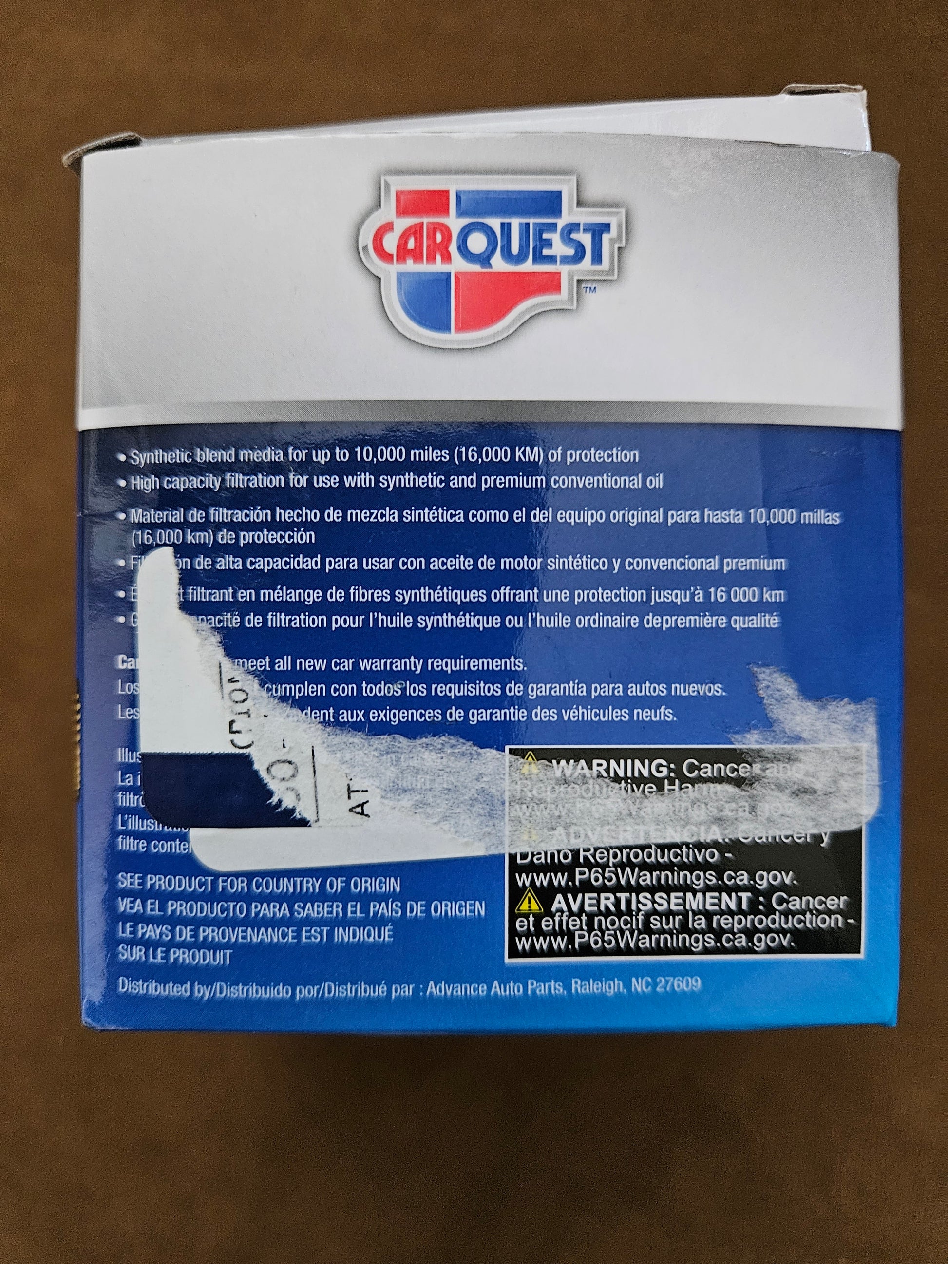 2011-18 BMW Engine Oil Filter Cartridge CARQUEST 95153 NEW