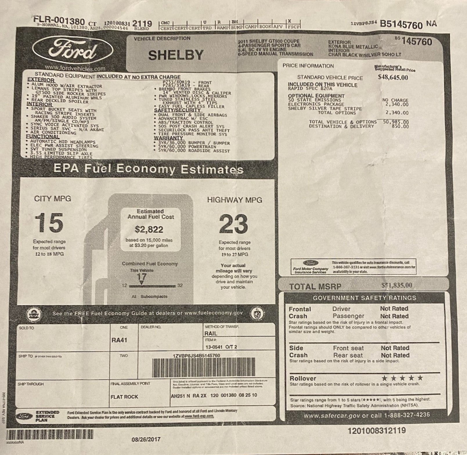 2011 Ford Shelby Mustang GT500 5.4L V8 Supercharged 6-Speed Manual 11k miles SOLD