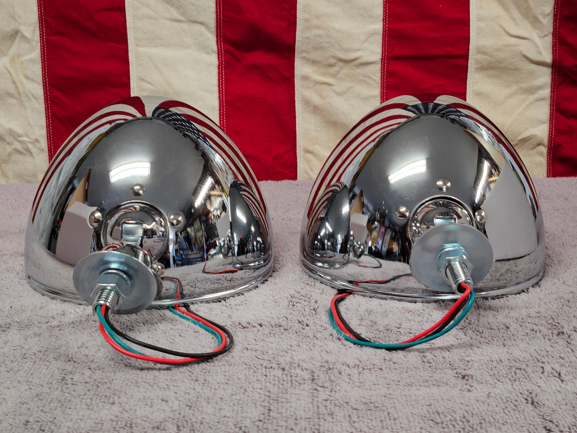 Chrome 7 inch Dietz Style Speedway Headlight Bucket Pair NEW