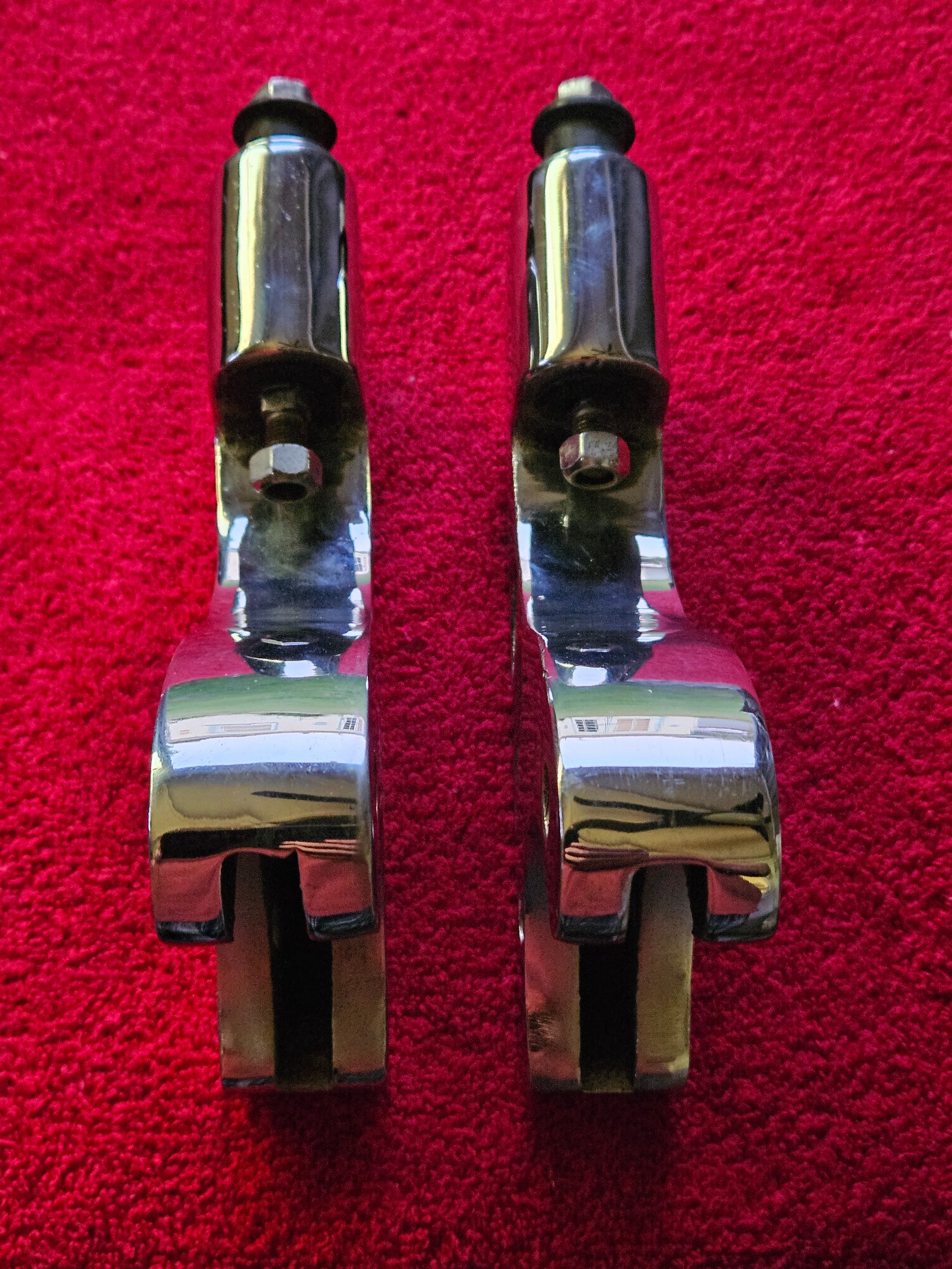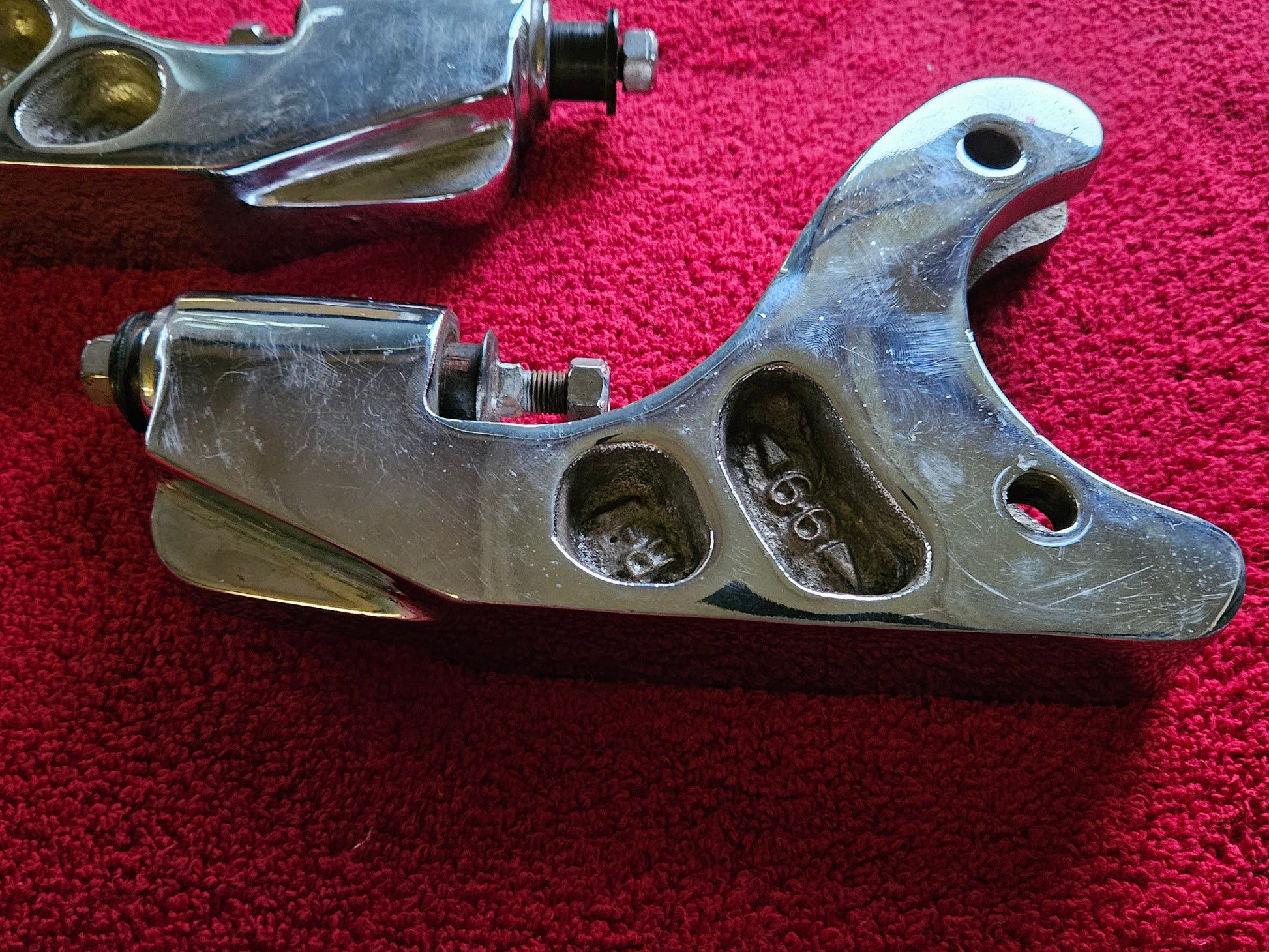 These do not look like they were ever mounted. PSI hangers are becoming really hard to find in any condition, mush less CHROMED. Perfect for hanging a transverse spring in the rear of your traditional 1932, 1933, 1934, 1935, 1936, 1937, 1938, 1939 custom hot rod. Similar to the 1935-1936 Ford rear radius rod trailing arm style for mounting the spring. Heavy duty chromed steel brackets.