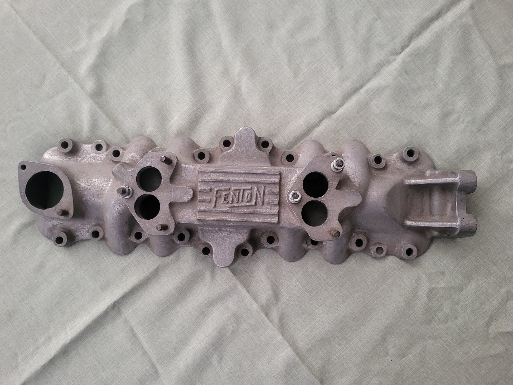 Great original Fenton dual 2bbl intake. Clean and all bolt holes are solid. Please look at the pictures carefully.