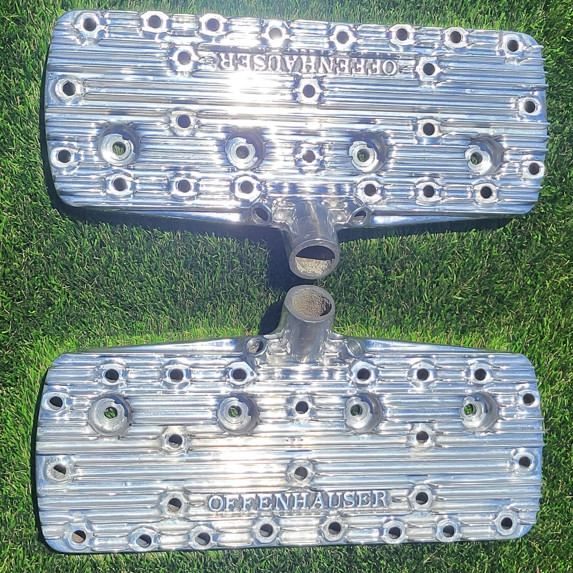Offenhauser 1068 Ford Flathead V8 Fully Polished Finned Aluminum Heads Pair